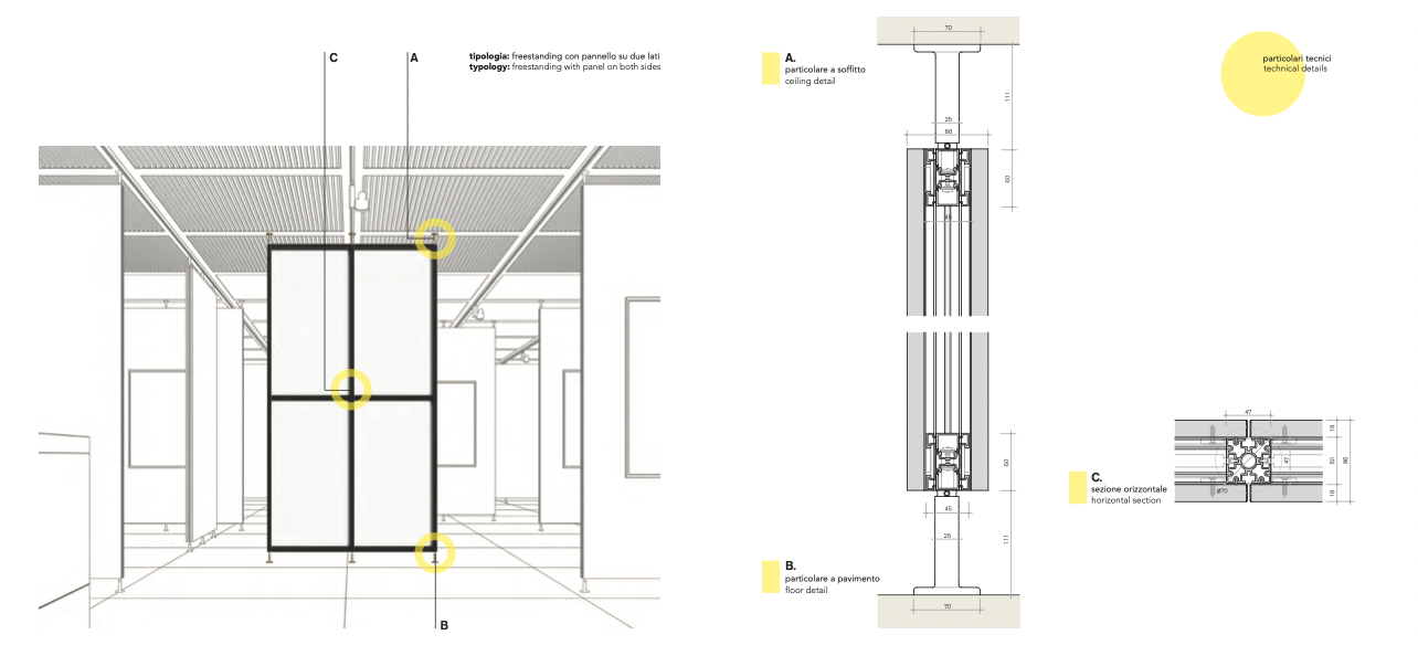 areas a new look without the hassle of extensive construction works and system installations. The decorative panels available in a wide array of textures and colours, the option to furnish rooms with desks, shelving and storage compartments, and the ease of changing and replacing coverings and accessories, represent the system’s key strength and an excellent opportunity to refresh the space.